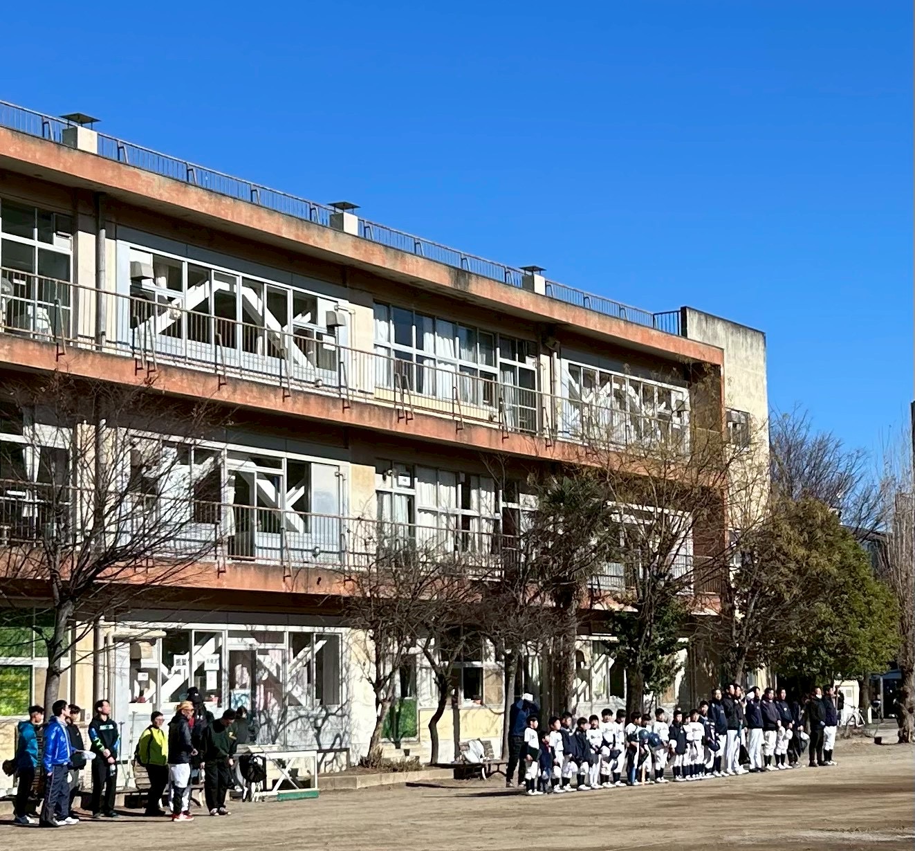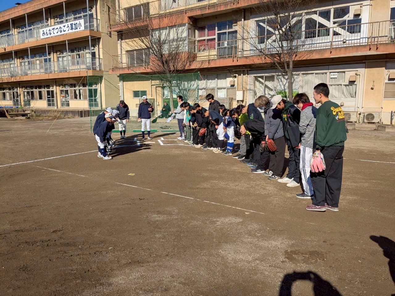 最後に一年間お世話になった草加小のグラウンドにみんなで元気いっぱい挨拶をしました!